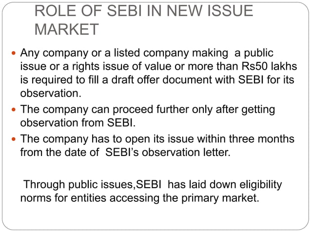 Role of sebi in new issue matket and its functions | PPT