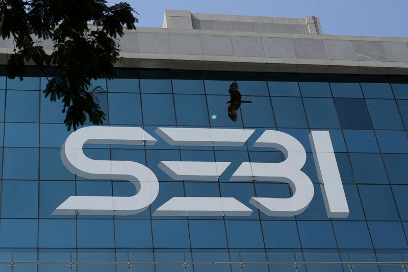 A Securities and Exchange Board of India (SEBI) logo is seen on the ...