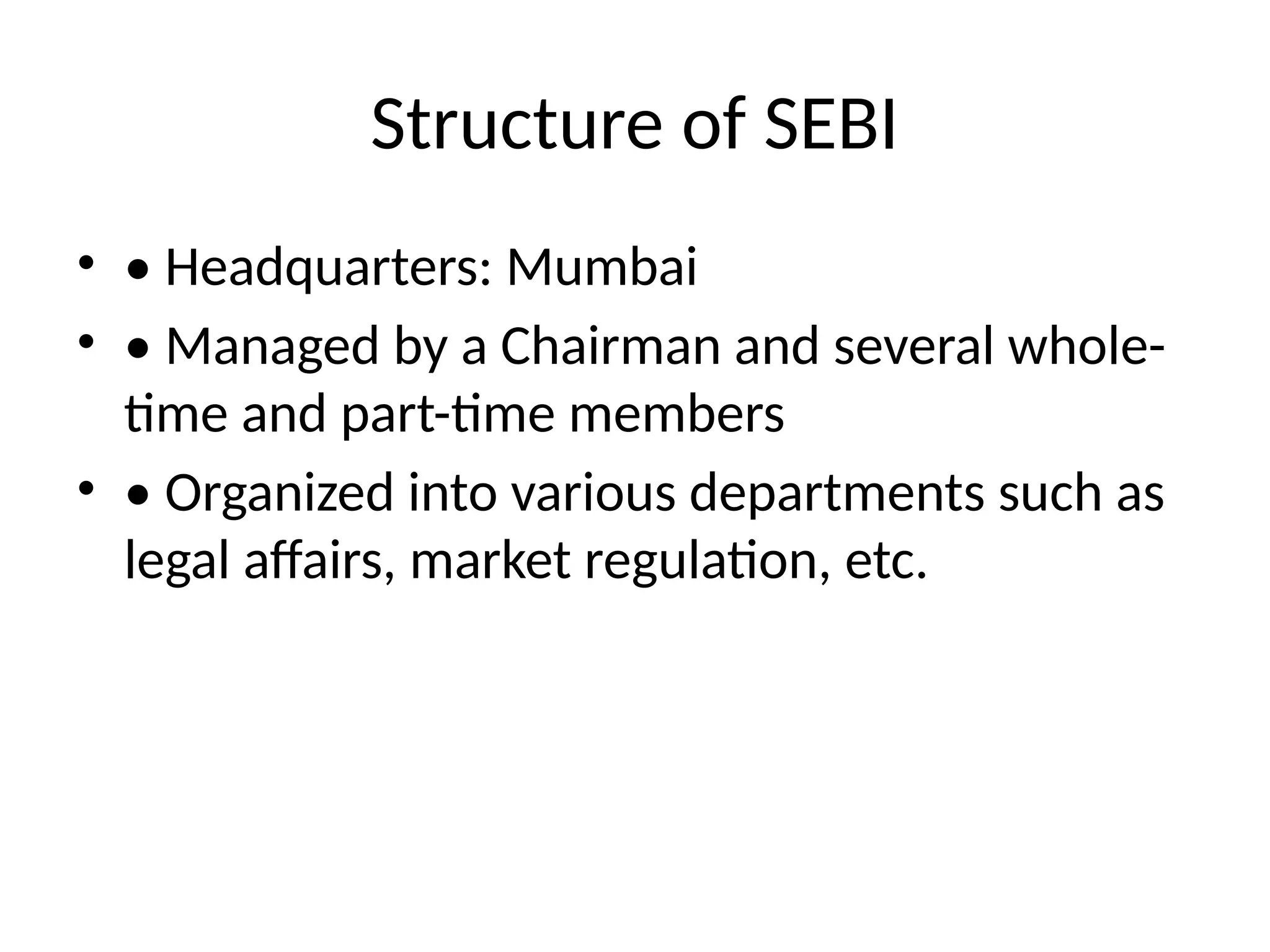 SEBI - Structure, Objectives, Function | PDF | Securities (Finance ...