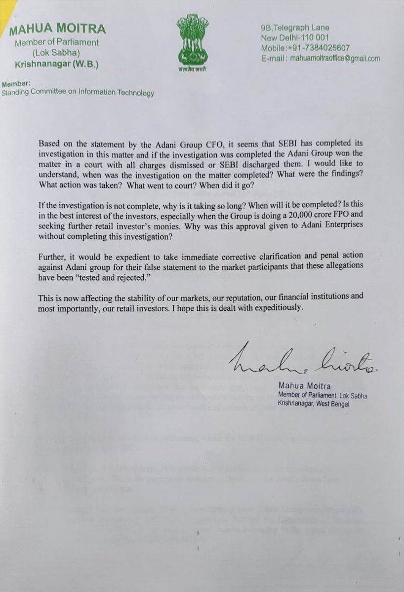 Mahua Moitra on Twitter: "Written to @SEBI_India again today wanting ...