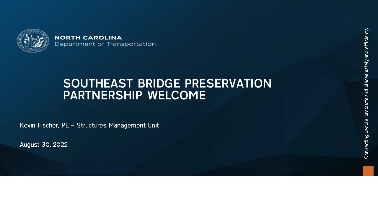 Welcome by North Carolina DOT - Kevin Fischer NCDOT 2022-08-30 SEBPP ...