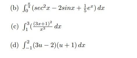 Solved (b) ∫04π(sec2x−2sinx+51ex)dx (c) ∫13(x3(3x+1)2dx (d) | Chegg.com