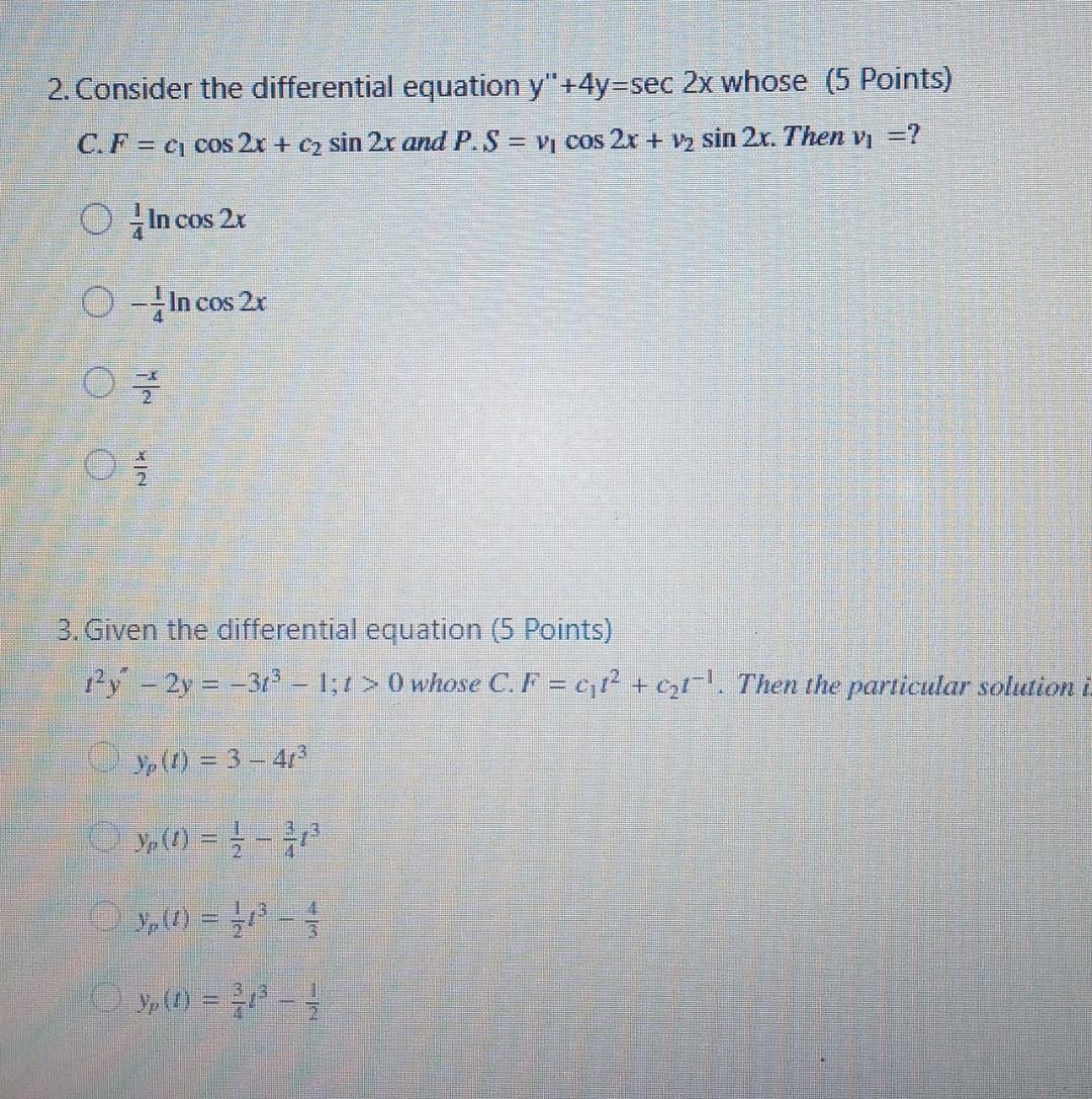 Solved Consider the differential equation y′′+y=sec2x Would | Chegg.com