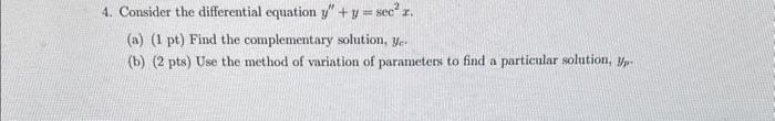 Solved 4. Consider the differential equation y′′+y=sec2x. | Chegg.com