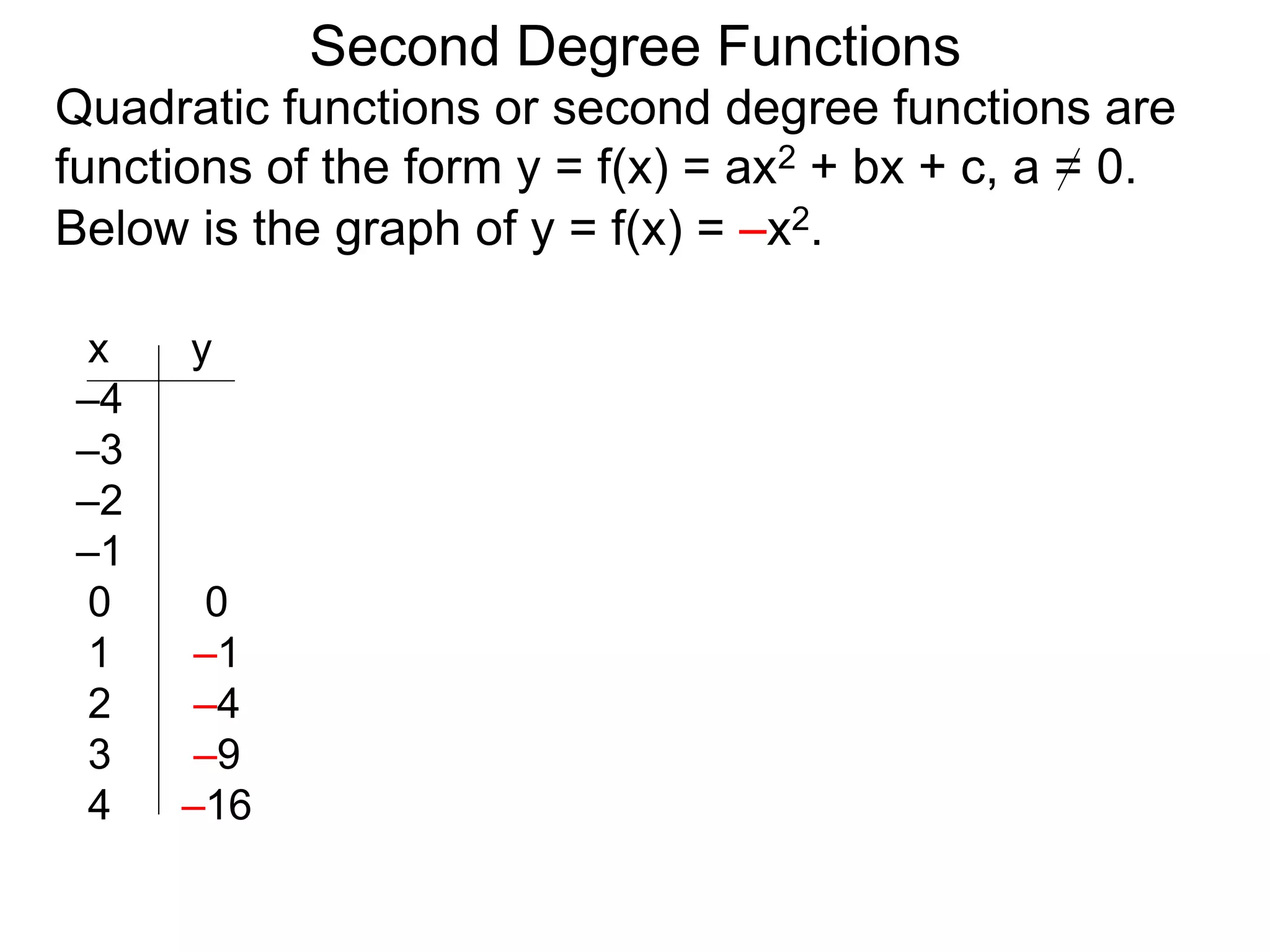 3 graphs of second degree functions x | PPT