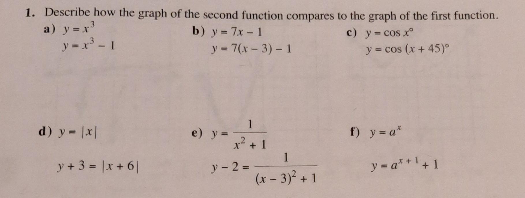 Solved 1. Describe how the graph of the second function | Chegg.com