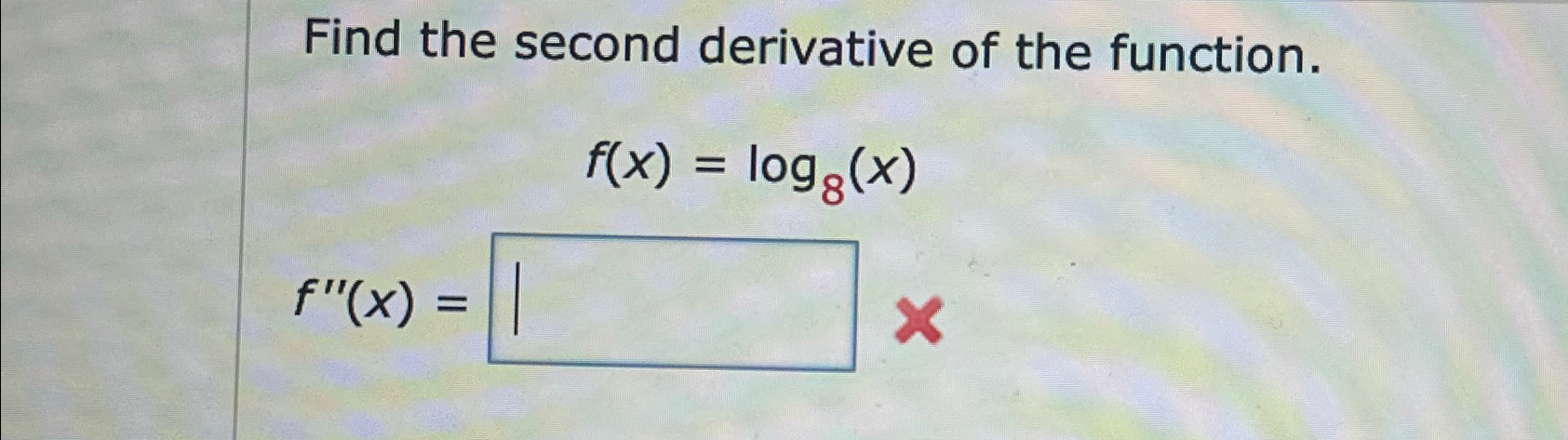 Solved Find the second derivative of the function. f(x) = | Chegg.com