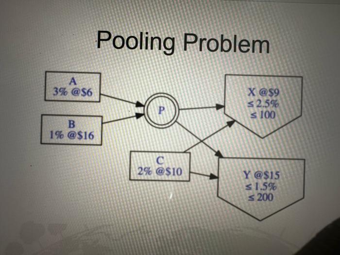 Solved A 3% @$6 B 1% @$16 Pooling Problem P C 2% @$10 X @$9 | Chegg.com