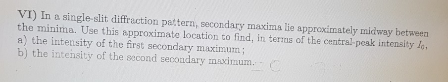 Solved VI) In a single-slit diffraction pattern, secondary | Chegg.com