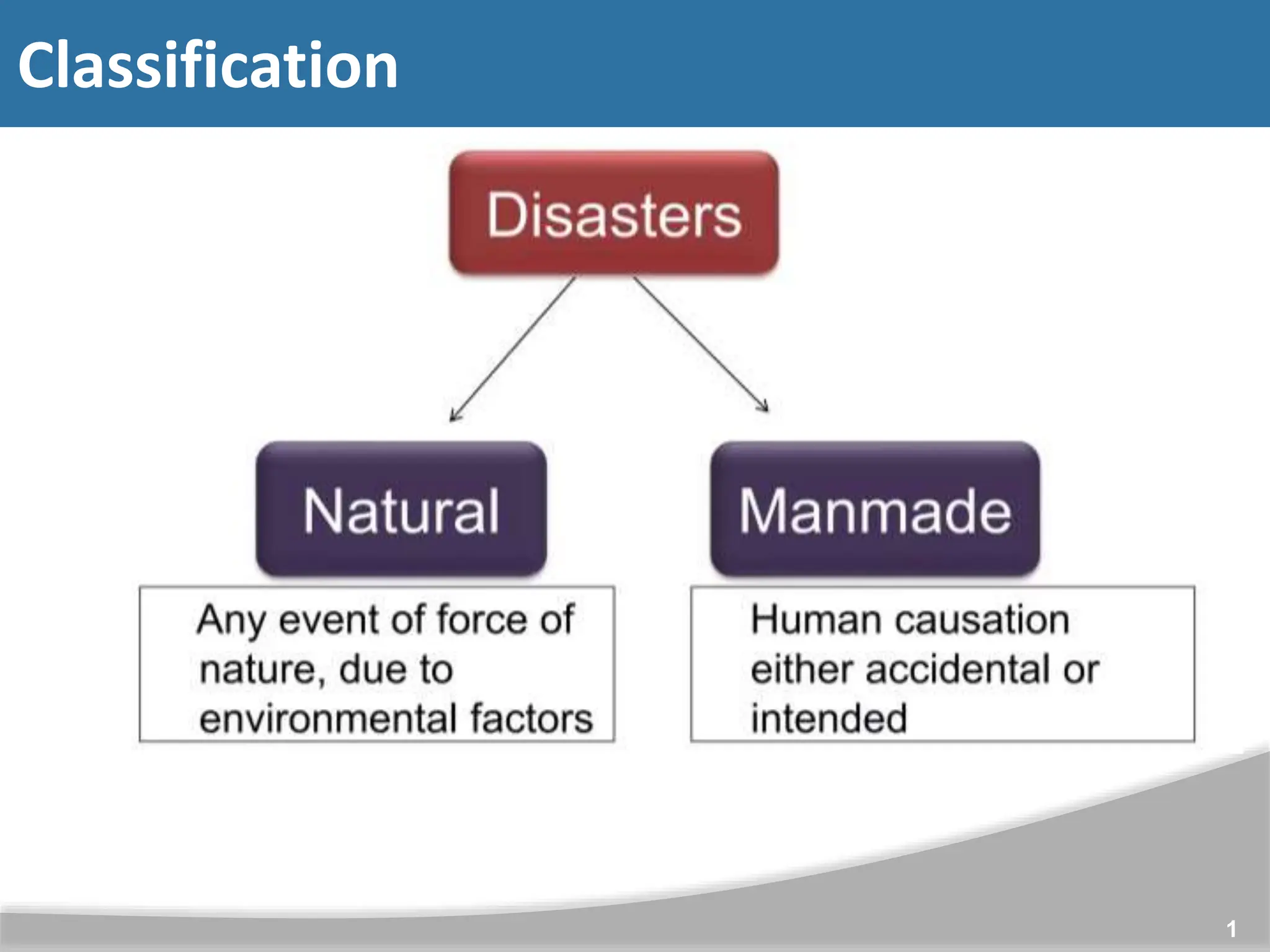 1 Examples of disasters classified by 'element' causing it and degree ...