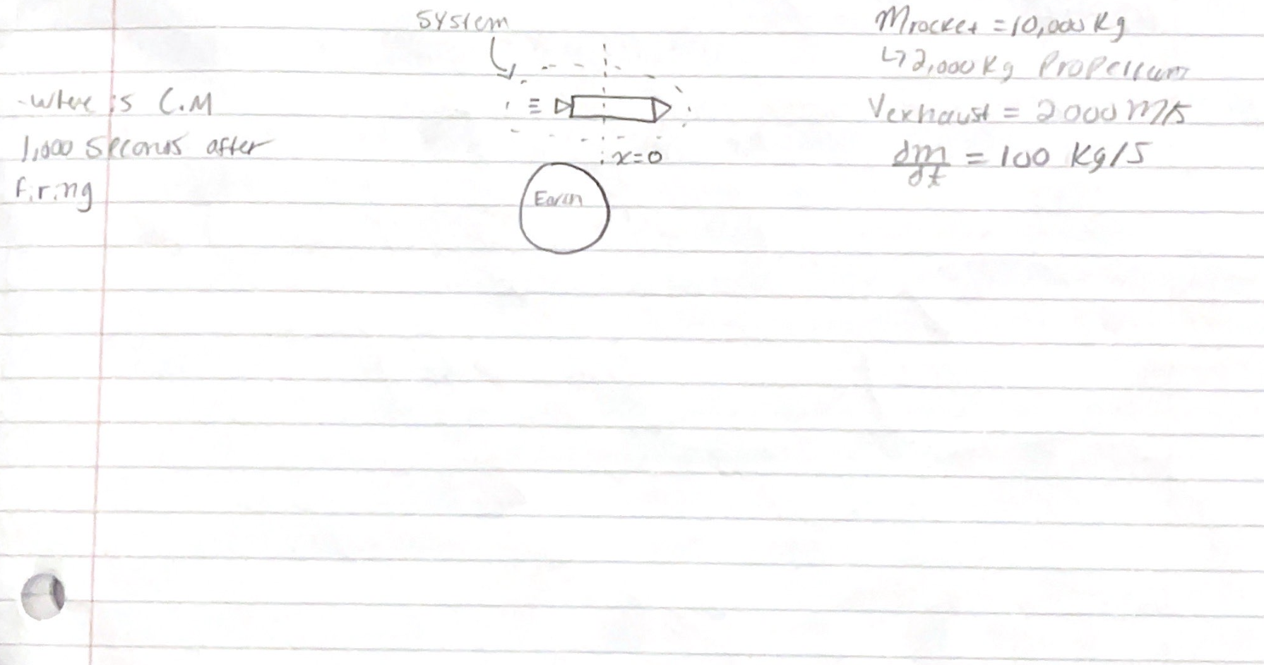 Solved Find center of mass after 1,000 seconds after firing | Chegg.com