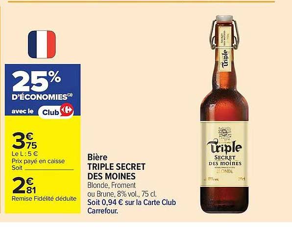 Promo Bière Triple Secret Des Moines chez Carrefour - 123Catalogue.fr
