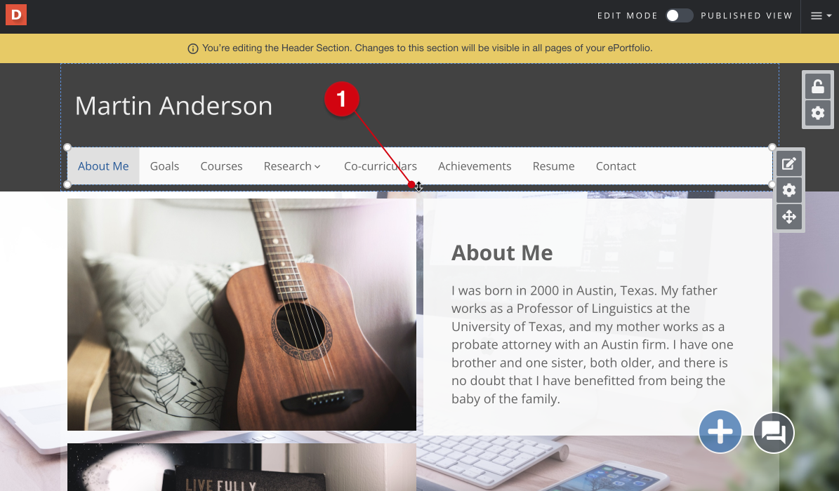 Editing the Header Section – Digication Help Desk