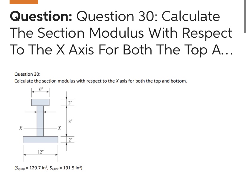 Solved Question: Question 30: Calculate The Section Modulus | Chegg.com