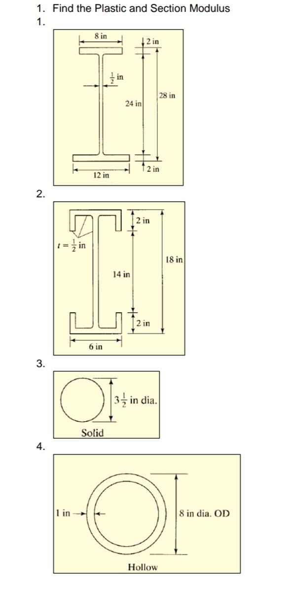 Solved 1. Find the Plastic and Section Modulus | Chegg.com