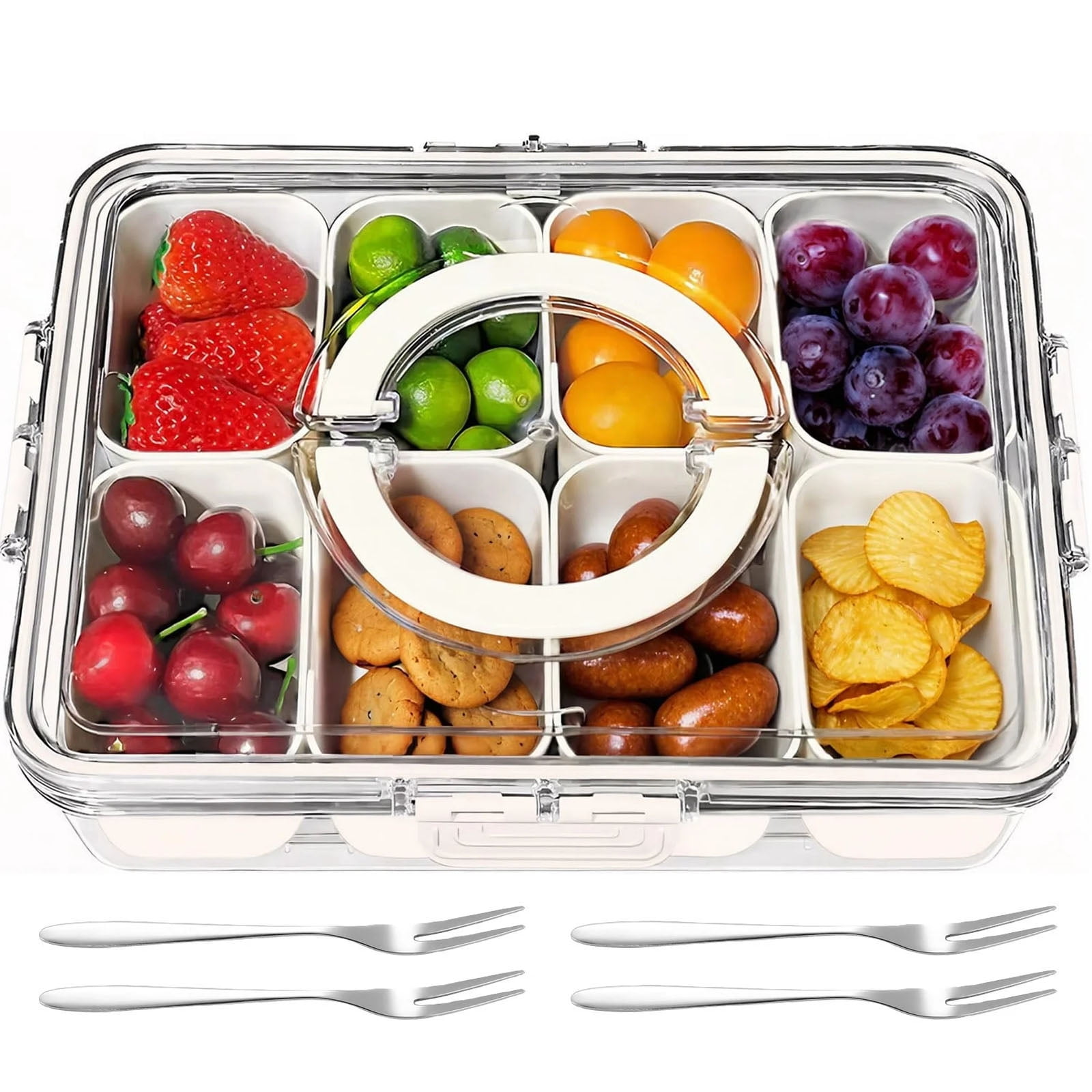 Divided Serving Tray with Lid and Handle, Portable Snack Containers ...
