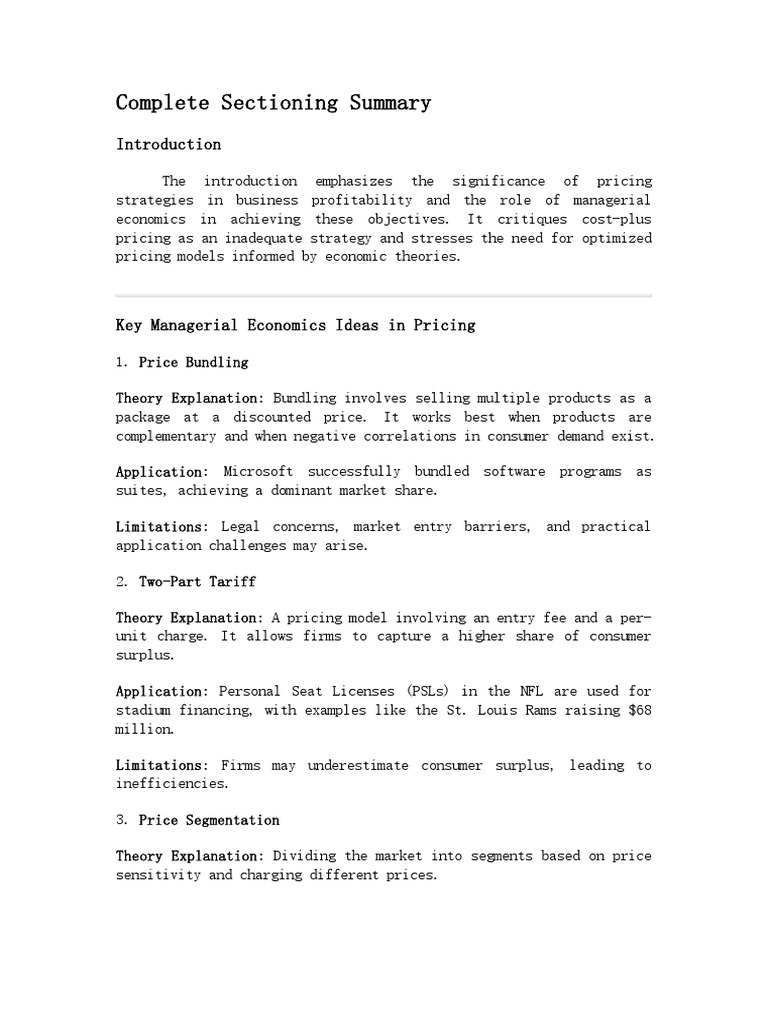 Complete Sectioning Summary | PDF | Pricing | Economics