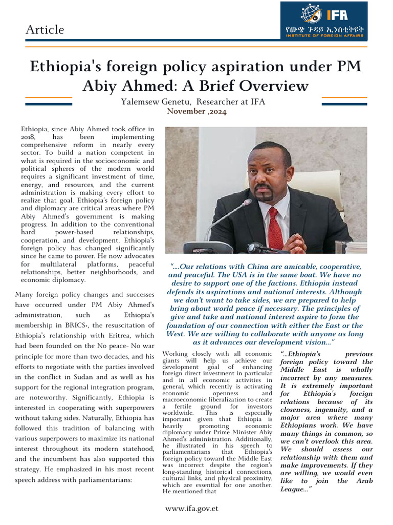 Ethiopias Foreign Policy Aspiration Under PM Abiy Ahmed A Brief | PDF ...
