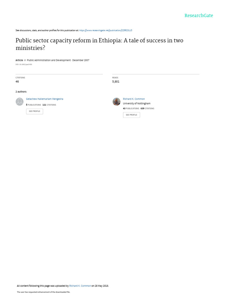 (PDF) Public service reform in Ethiopia: Challenges and gaps post ...