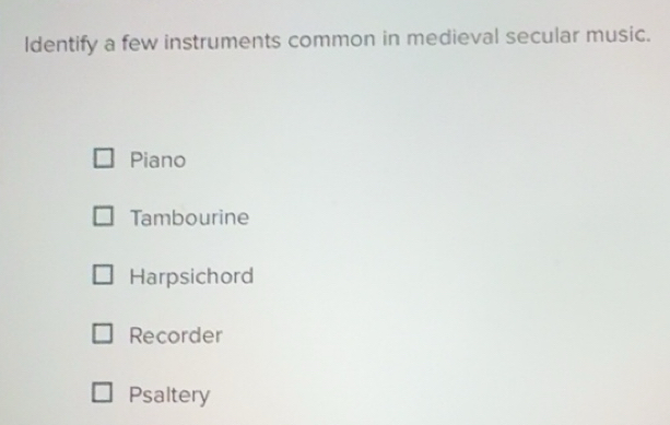 Solved: Identify a few instruments common in medieval secular music ...