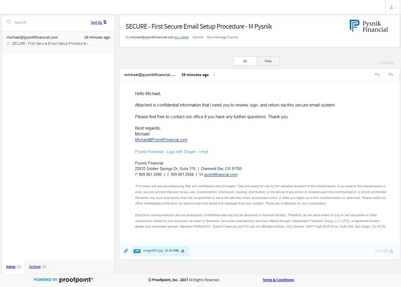 Secure Email Setup using Proofpoint — Pysnik Financial