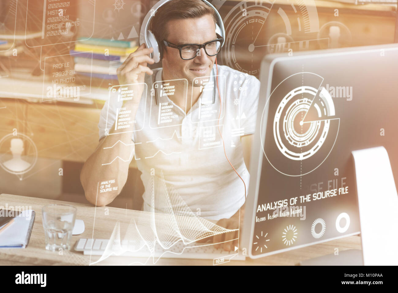 Premium Photo | A serious caucasian programmer in casual wears using ...