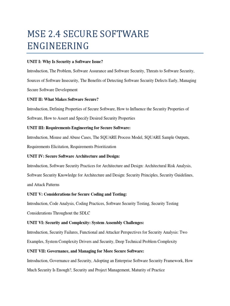 Secure Software Engineering Course Guide: Modules, Units, and | Course Hero