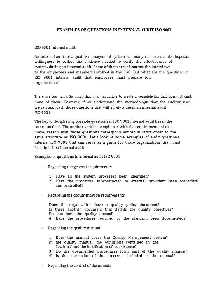 A. Examples of Questions in Internal Audit ISO 9001 | PDF | Audit ...