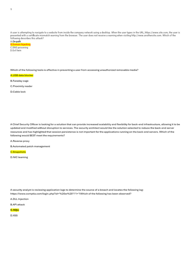 Sample CompTIA Security+ exam questions and answers | TechTarget