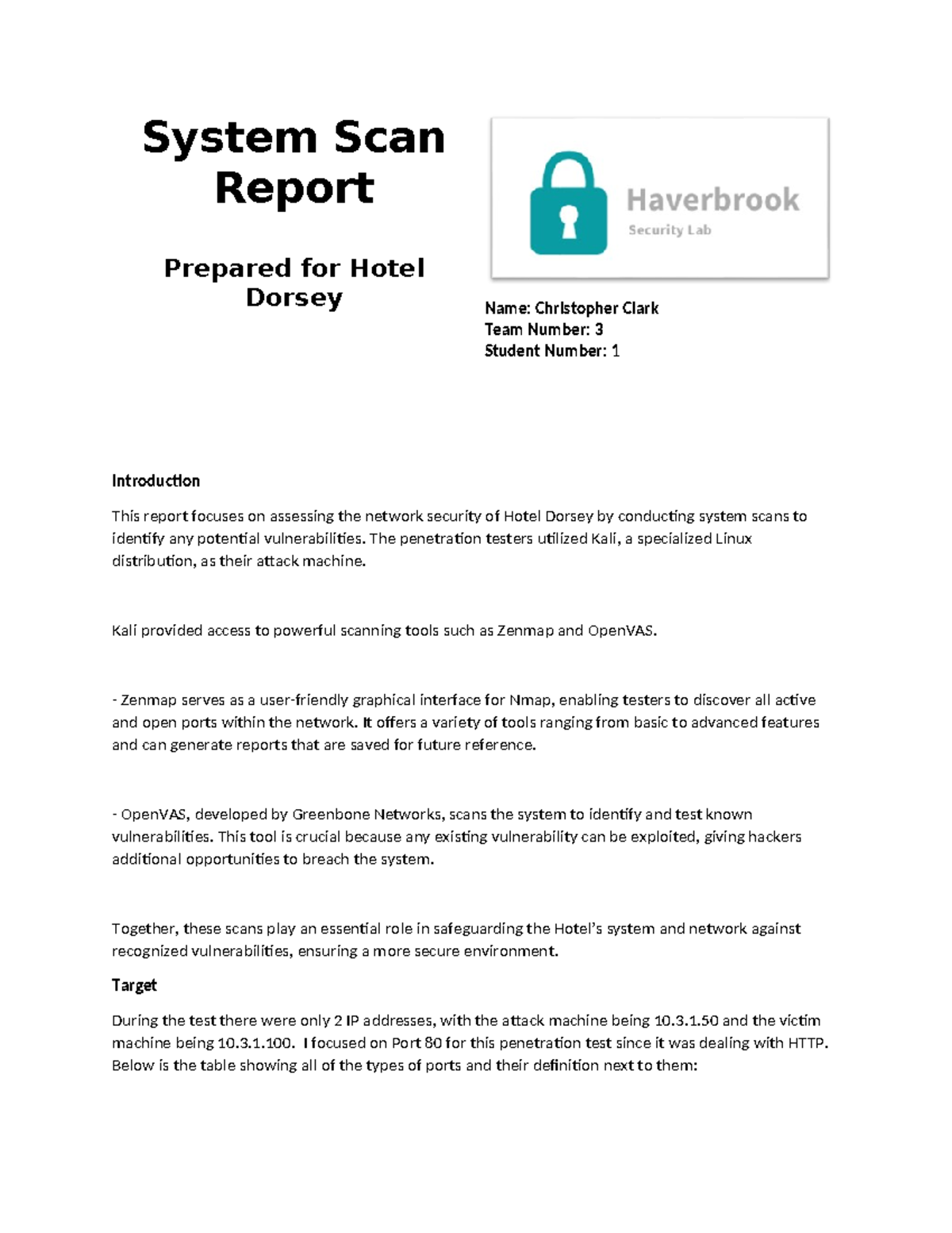 System Scan Report: Vulnerabilities and Open Ports at Hotel | Course Hero