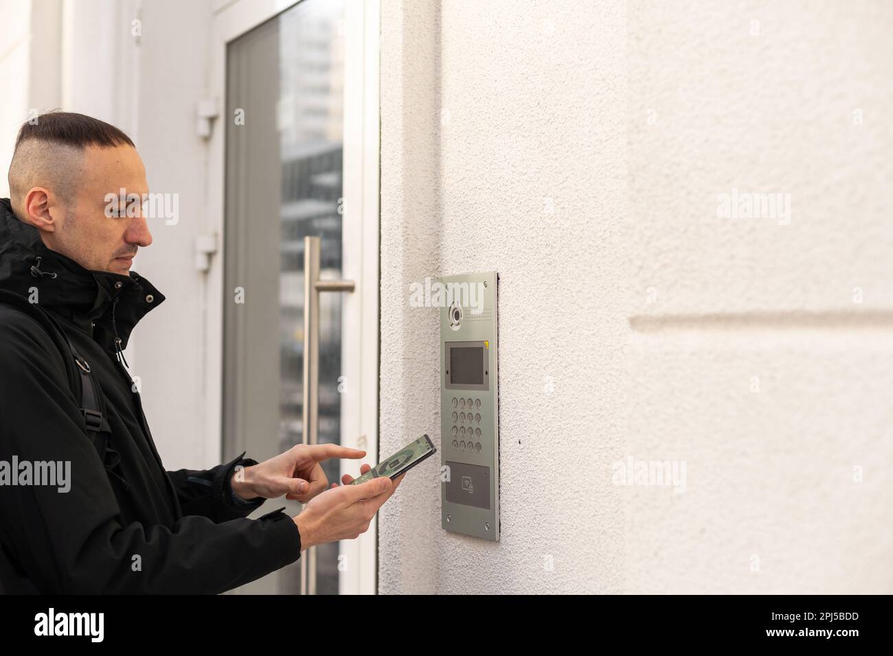 Young businessman is using a mobile phone to access security system ...