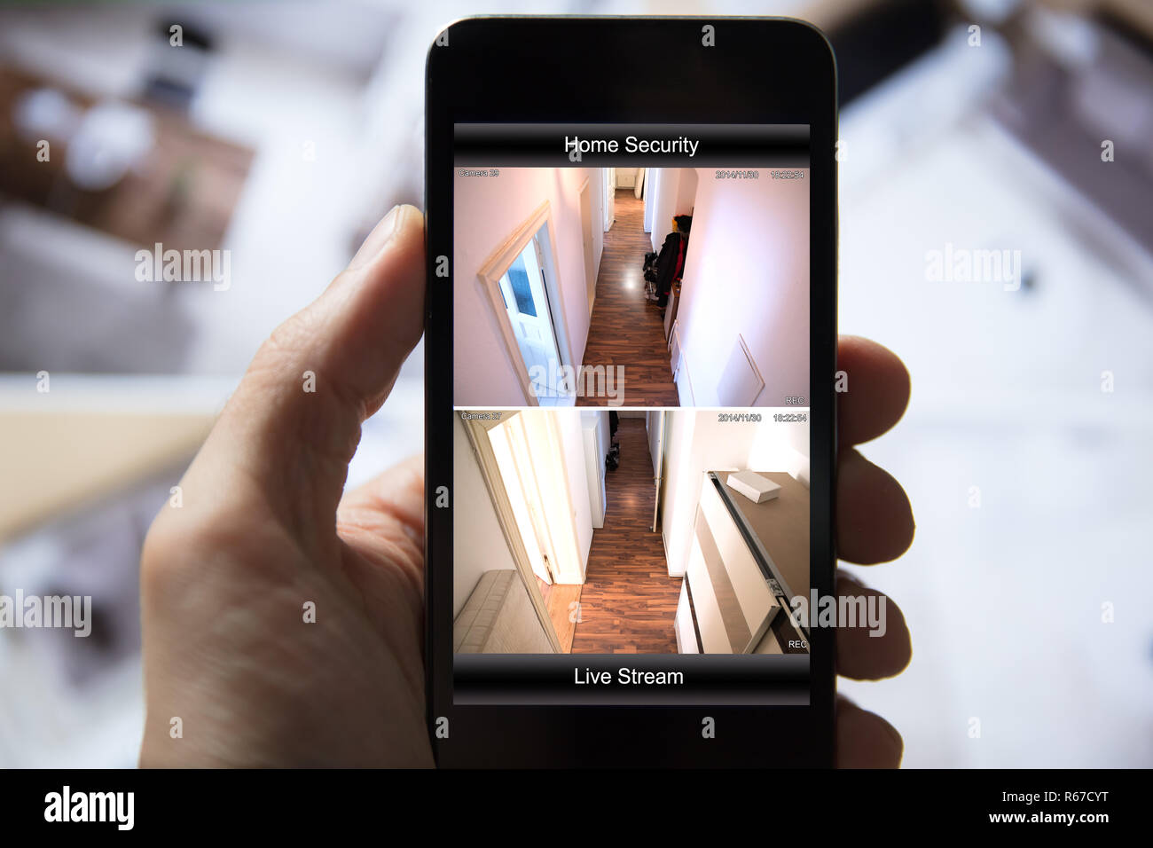 Person Using Home Security System On Mobile Phone Stock Photo - Alamy
