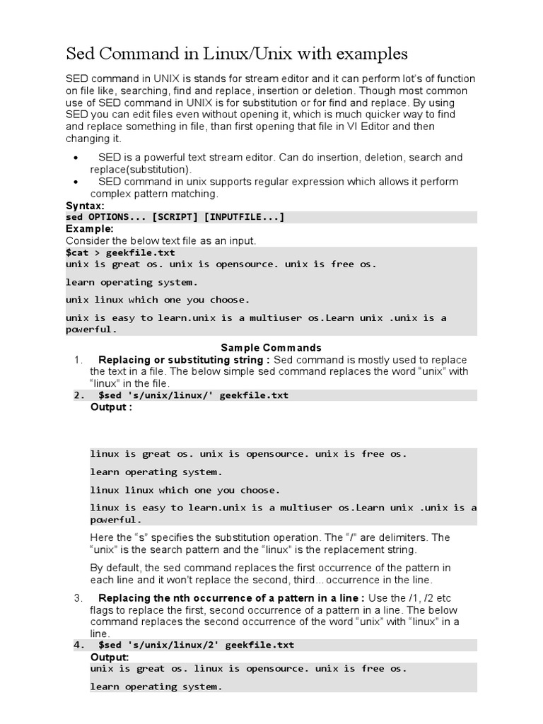 Sed Command in Linux/Unix With Examples: Syntax: Example | PDF ...