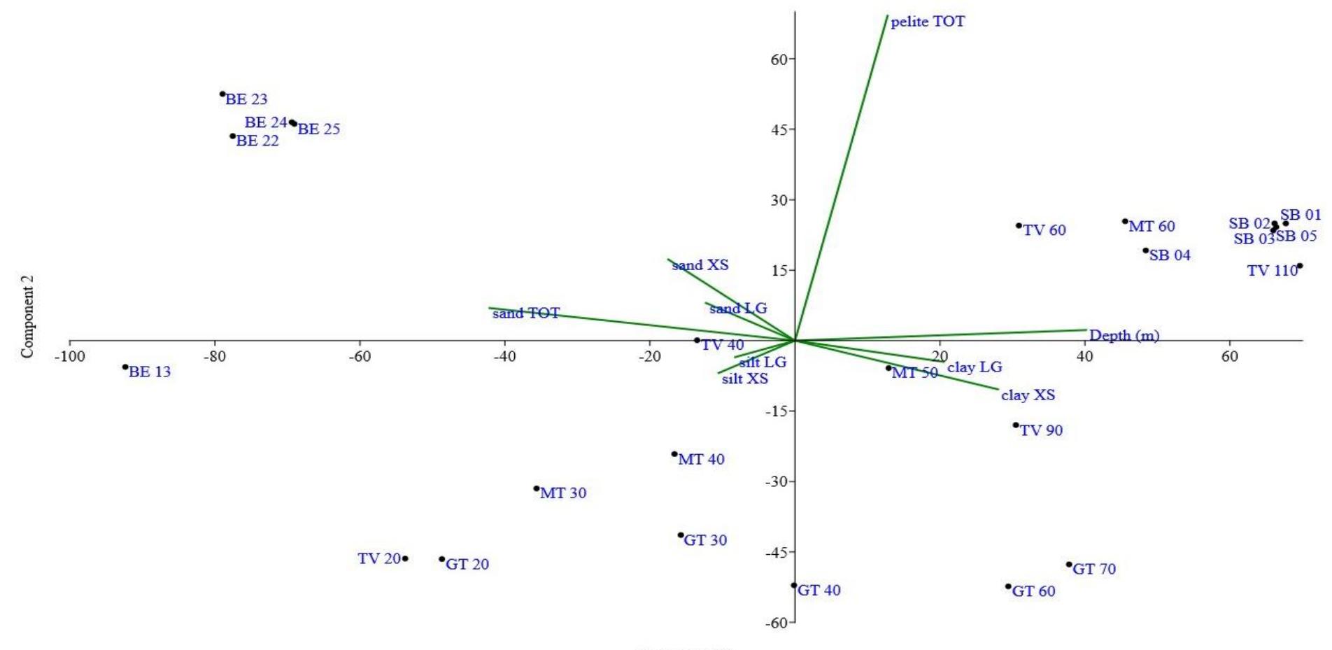 Grain-size data, measured by sieving (sand %) and Sedigraph (silt and ...