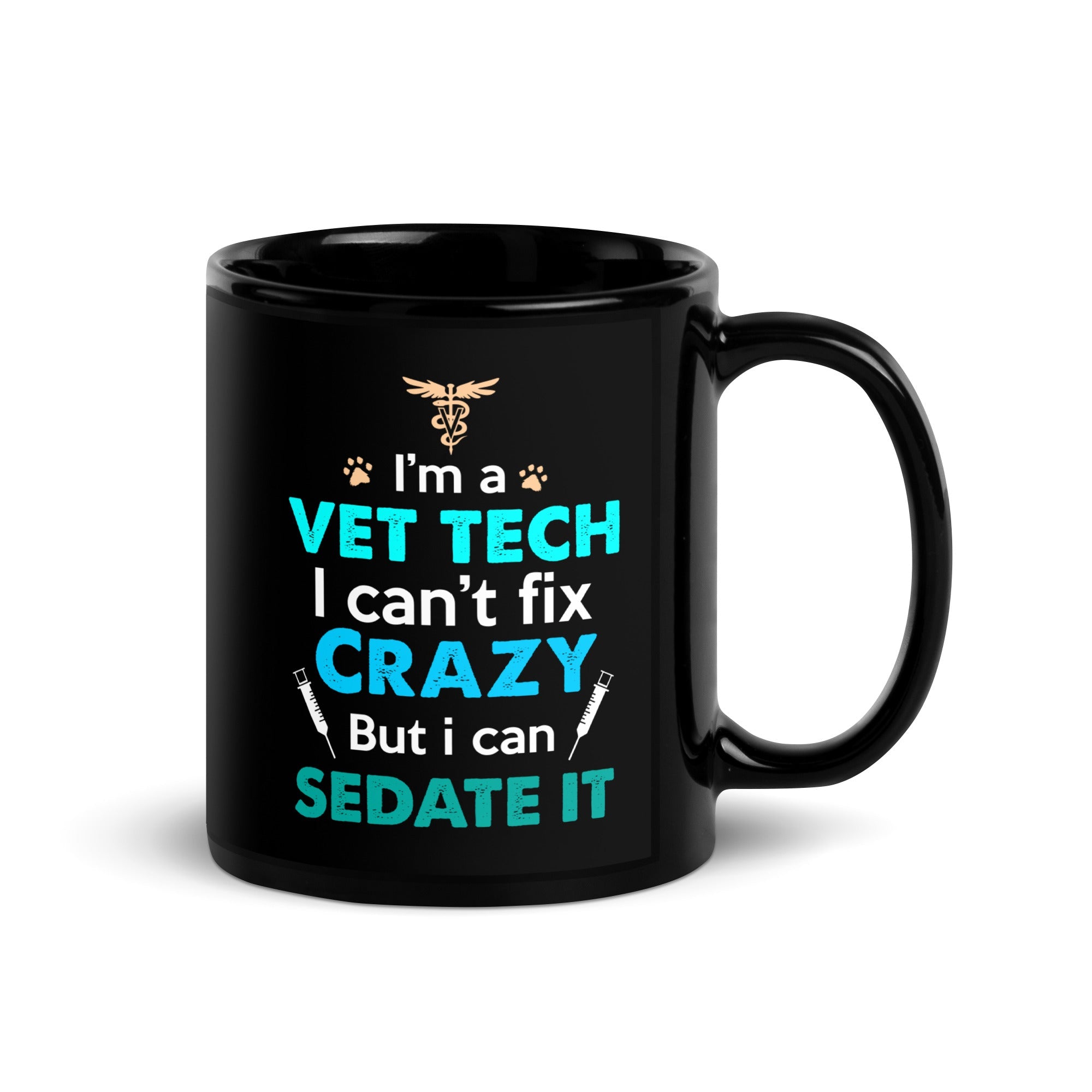 Vet Tech - Can't fix crazy, but I can sedate it Black Glossy Mug – I ...