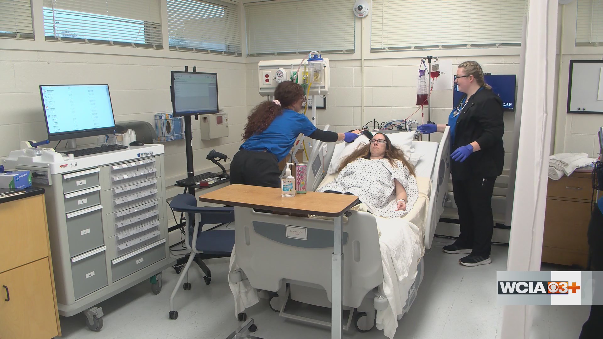 Clinician aligning swab and vial, causing animated medical heart ECG ...