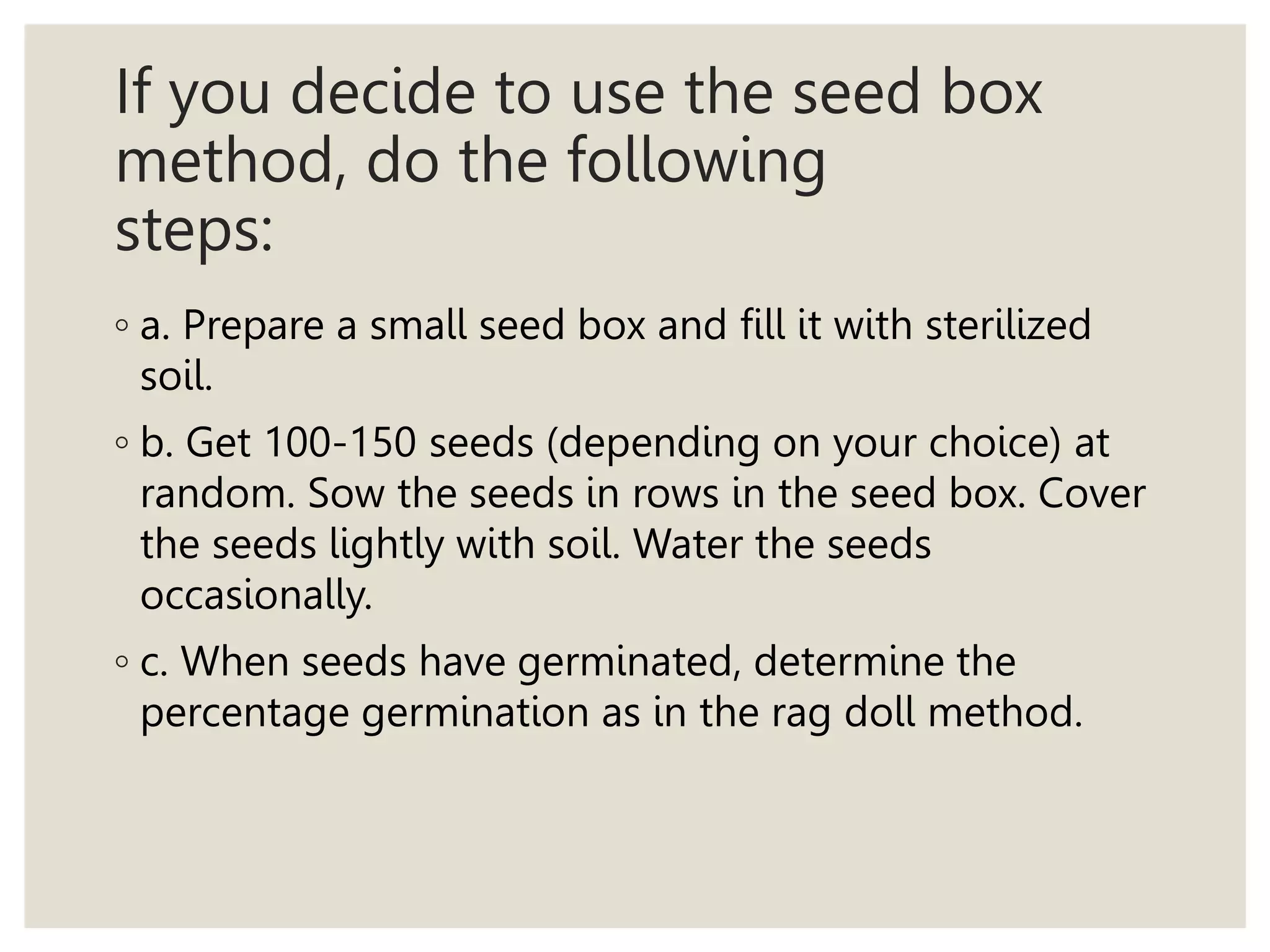 Seed Germination Testing using rag-doll and seed box method | PPTX