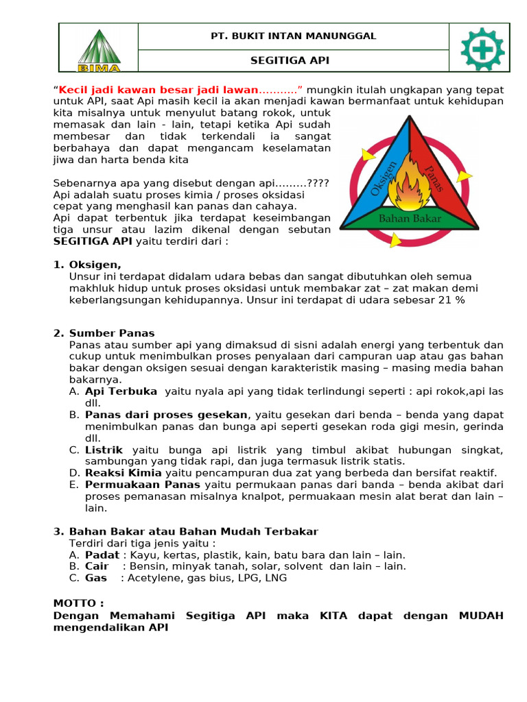 PT. CATUR ELANG PERKASA QHSE DEPARTEMENT: SEGITIGA API