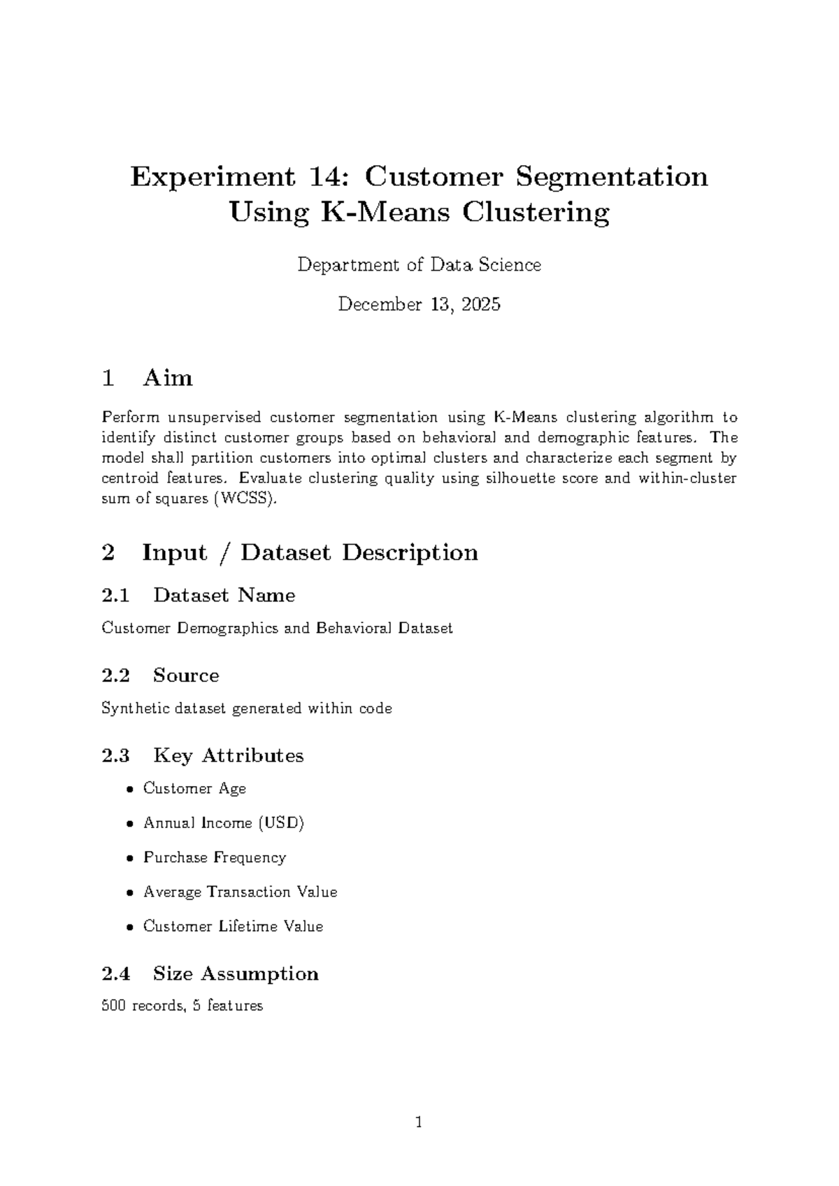 Experiment 14: Customer Segmentation via Clustering (22SCSE112000 ...