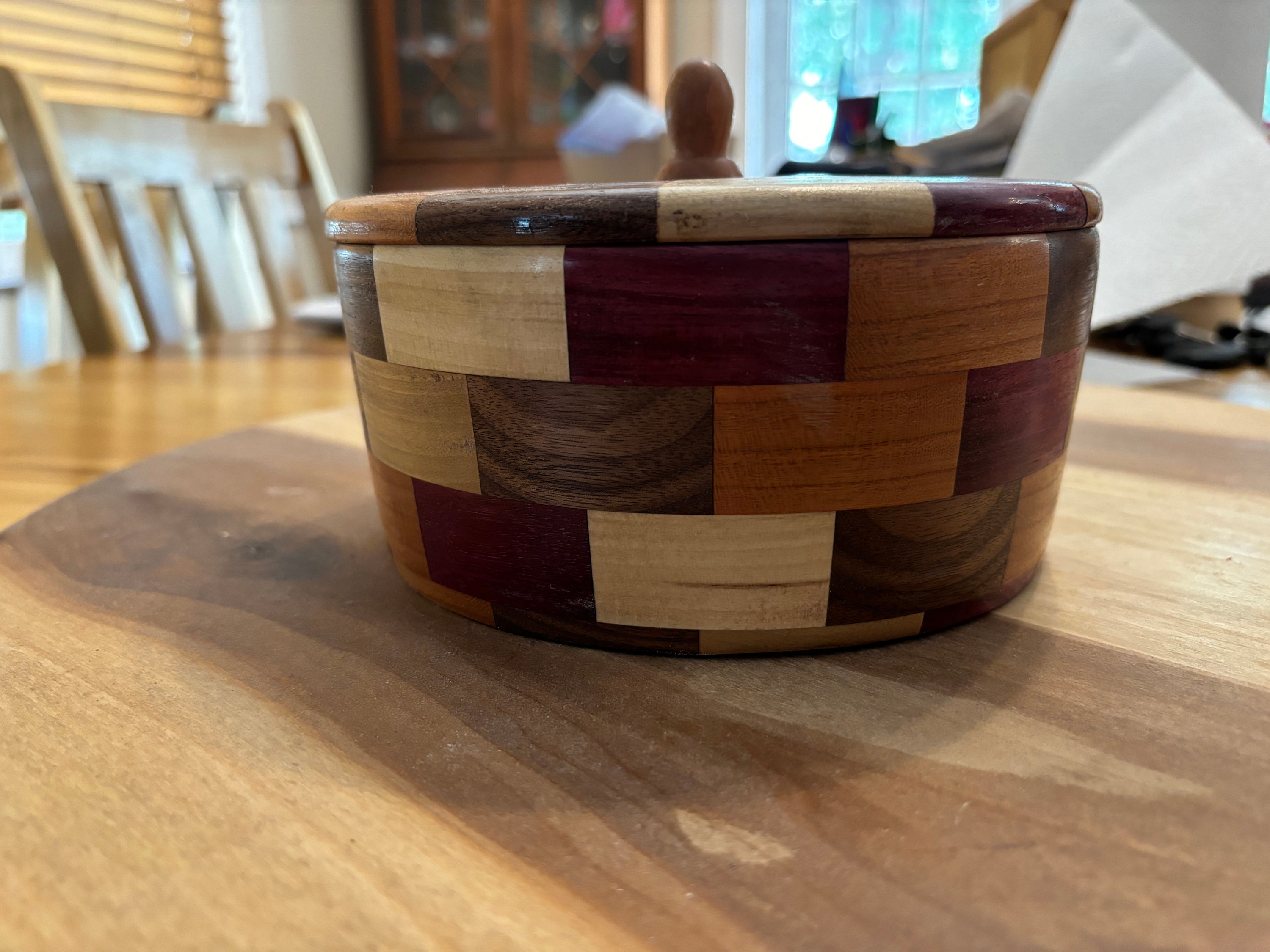 Segmented Wooden Bowl With Lid. Turned Wood Bowl. Decorative Artwork ...