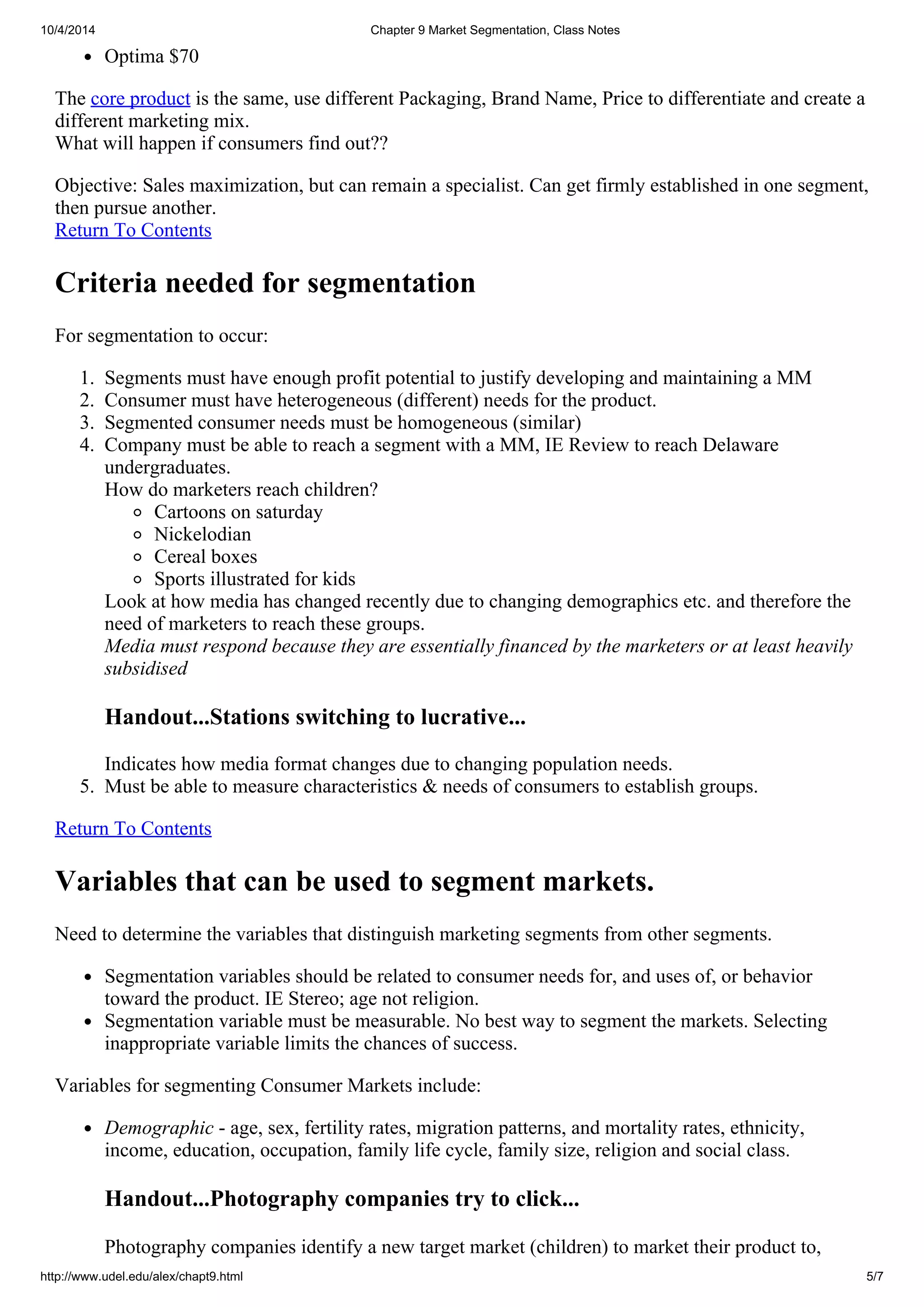 Chapter 9 market segmentation, class notes | PDF