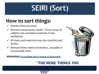 Implementing 1st S of the 5S: Seiri (Sort) PPT Slide Deck