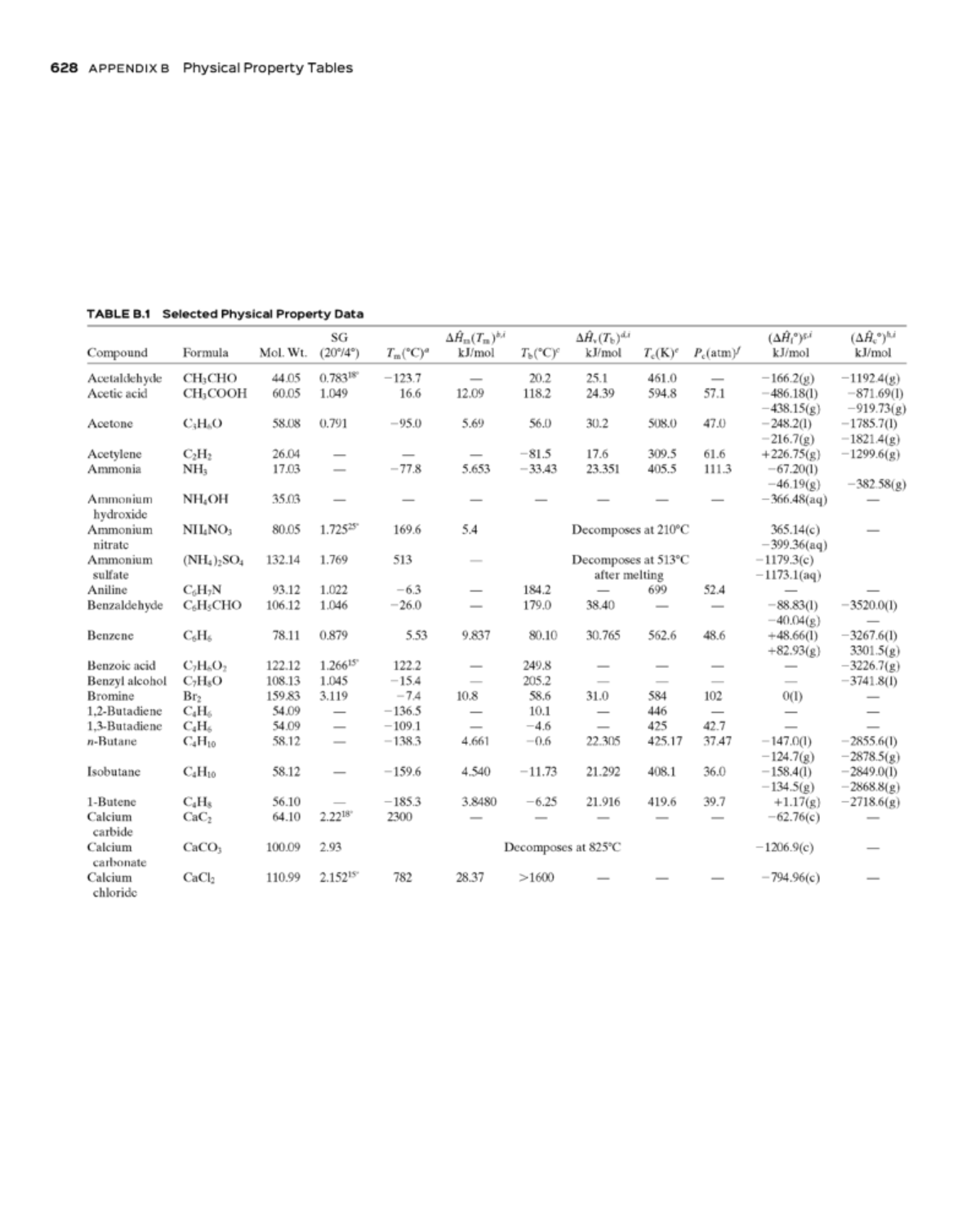 Appendix B: Physical Property Tables and Vapor Pressure Data - Studocu