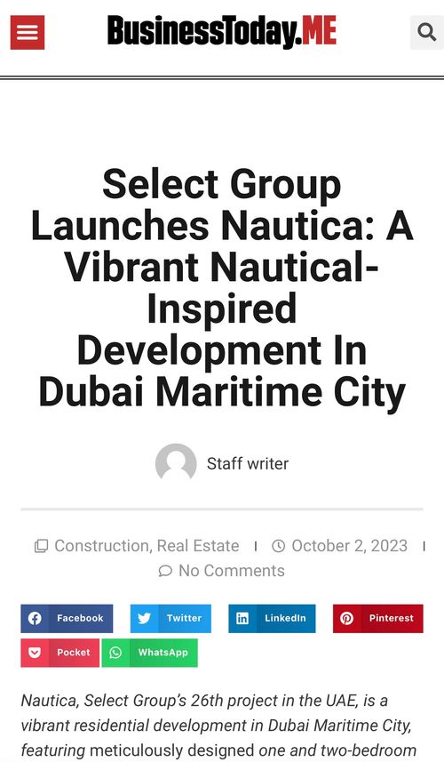 Dubai Real Estate: Select Group launches 26th project in UAE ‘Nautica ...