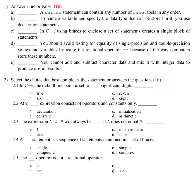 Sample Questions On Computer Science Subjects | PDF | C++ | Relational ...