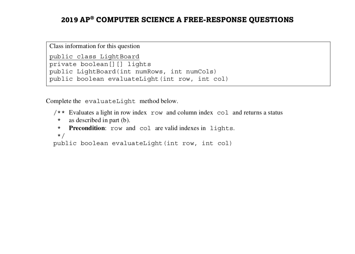 Solved 2019 APⓇ COMPUTER SCIENCE A FREE-RESPONSE QUESTIONS | Chegg.com