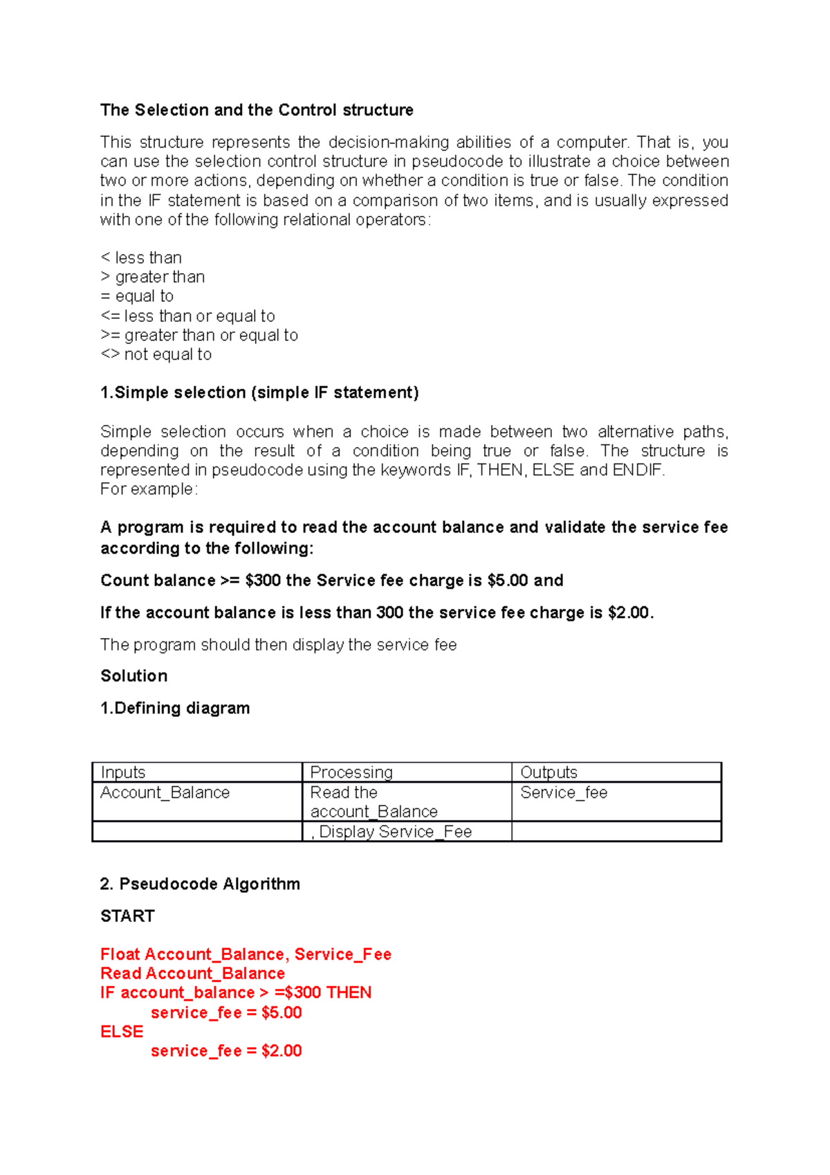 SOLUTION: Selection control structure - Studypool