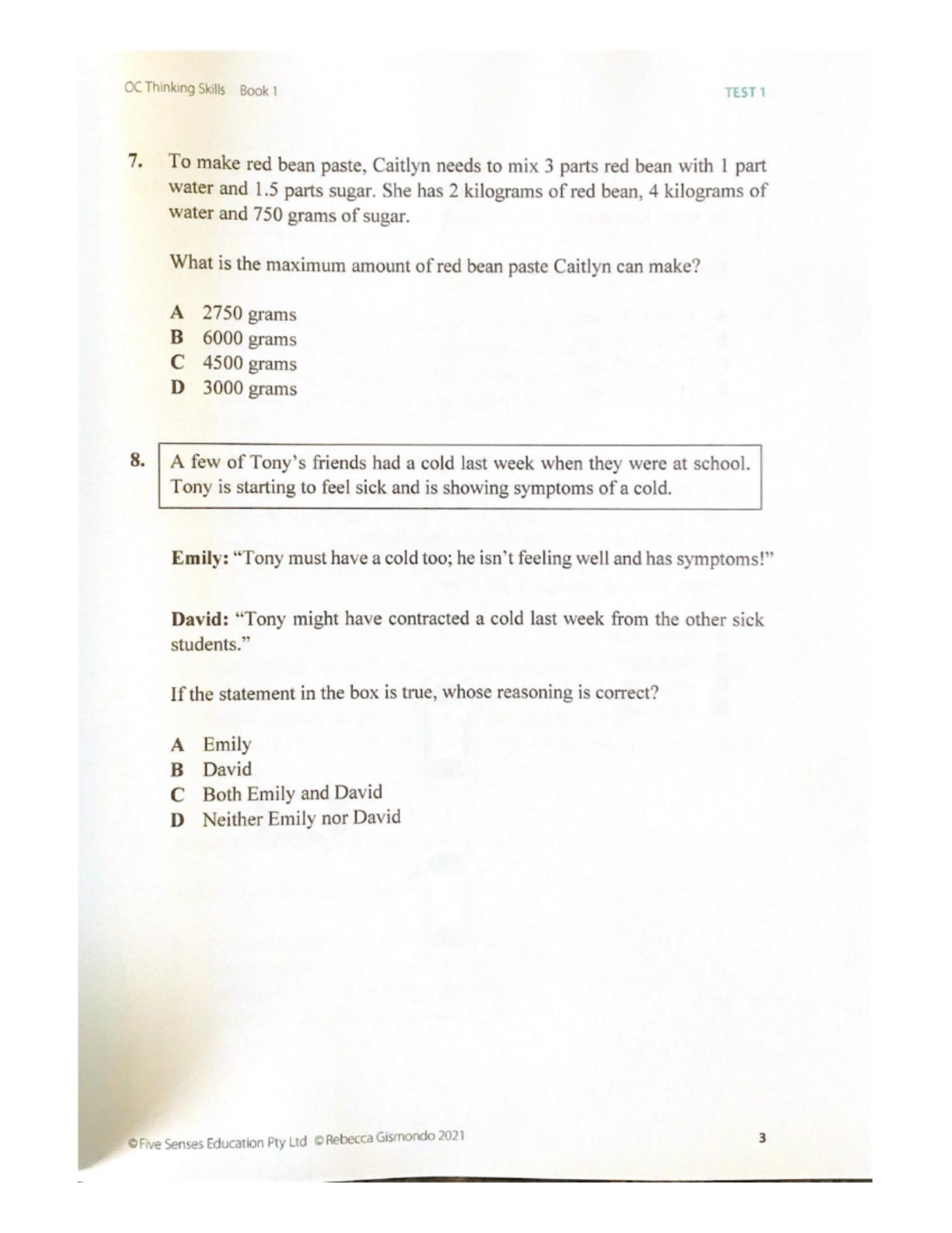 OC Thinking Skills 7: Selective Math Questions Test 1 - Studocu