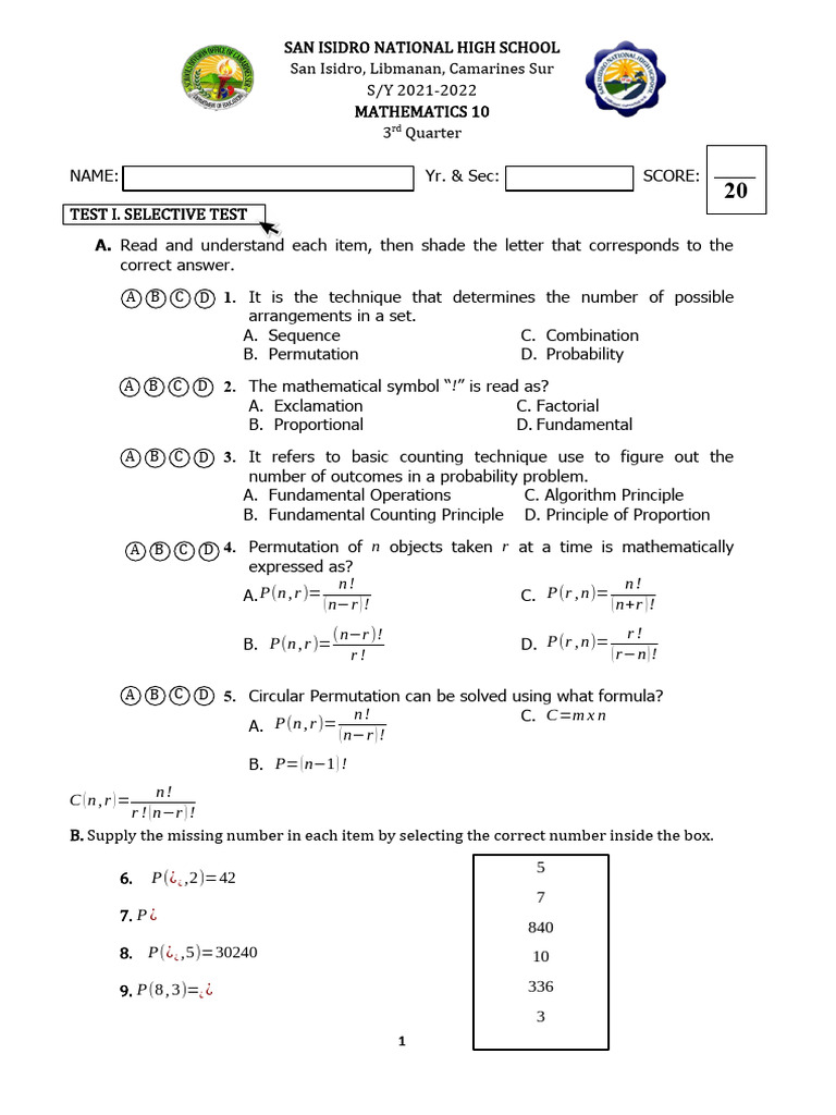 Selective and Constructive Tests (3rd Quarter) | PDF