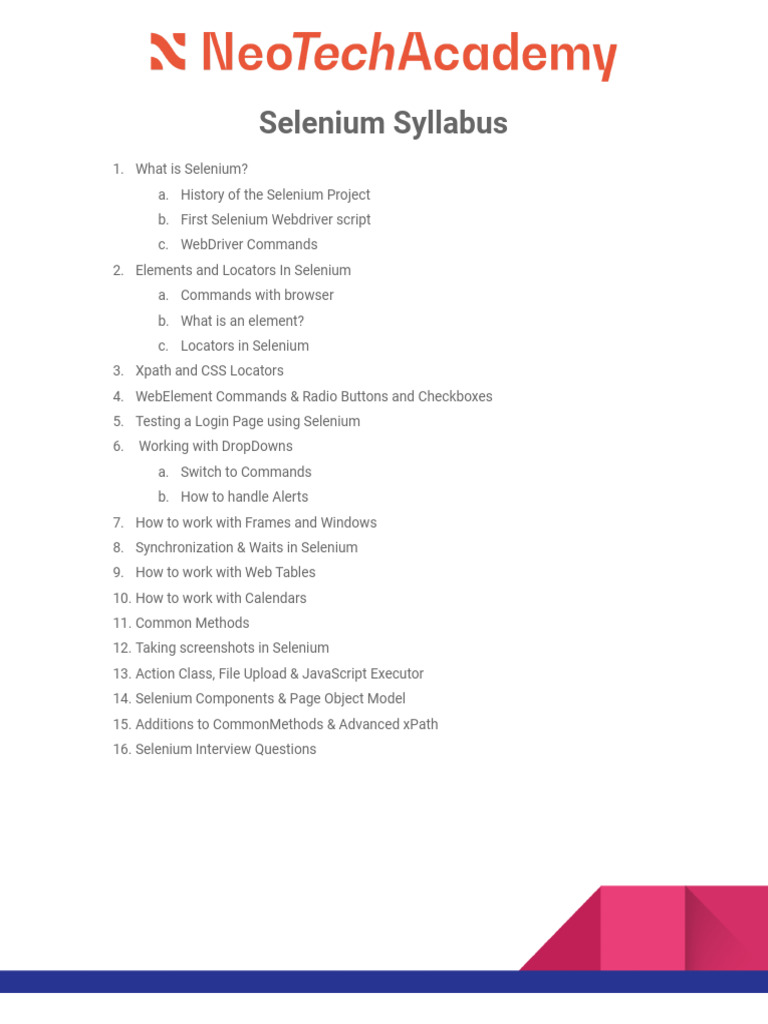 Neotech Syllabus - Selenium | PDF